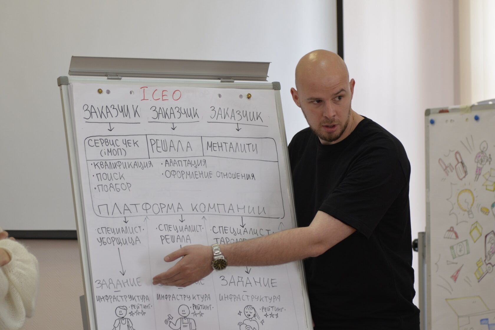 - Занятия сопровождает тьютор-фасилитатор. Он держит коммуникацию между участниками обучения и преподавателями-практиками из бизнеса